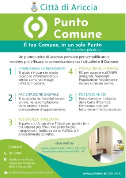 Punto Comune nasce come luogo di ascolto, orientamento e facilitazione, capace di accompagnare le persone nella gestione delle pratiche quotidiane e nell’utilizzo dei servizi online, rafforzando il legame di fiducia tra Ente e cittadinanza. L’auspicio condiviso è che questo nuovo servizio diventi presto un punto di riferimento stabile per tutti, contribuendo a rendere Ariccia una città sempre più vicina ai bisogni delle persone.
